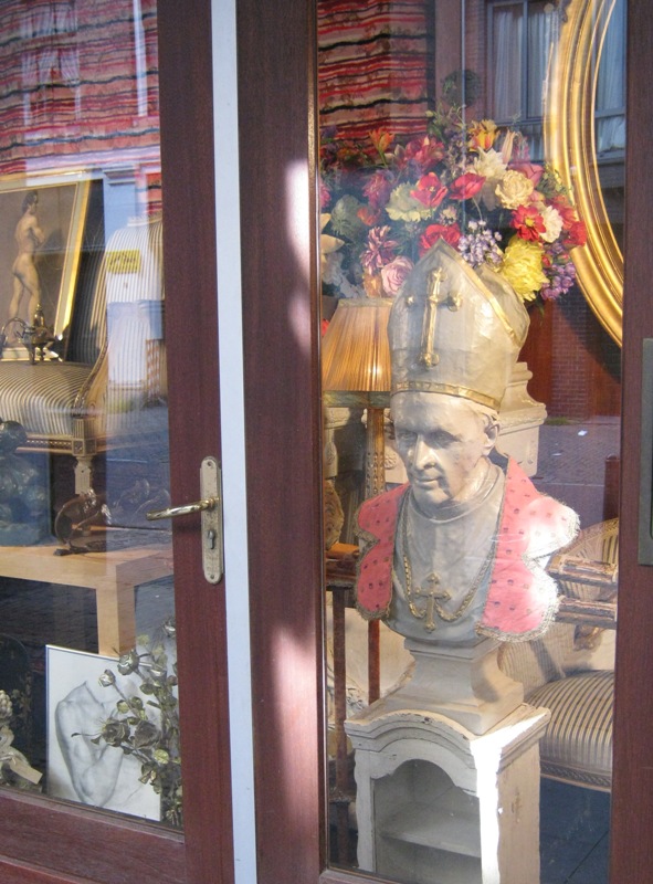 Когда-то этот епископ был коварен и грозен, а теперь он украшает витрину. Или, вернее, он ее озадачивает — такой мощный скульптурный портрет встретишь не часто.