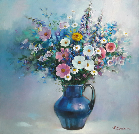 Картина была написана летом, но последние штрихи удалось сделать только зимой — наверное, не хватало зимнего солнца))). Размер 60х60 см. холст, масло. Людям нравятся мои букеты, и мне кажется, что они мне неплохо удаются. Москва, Питер, куда они только не улетают))) Так что любуйтесь, пока «Синяя ваза» не скрылась за стенами чьей-то шикарной квартиры)))